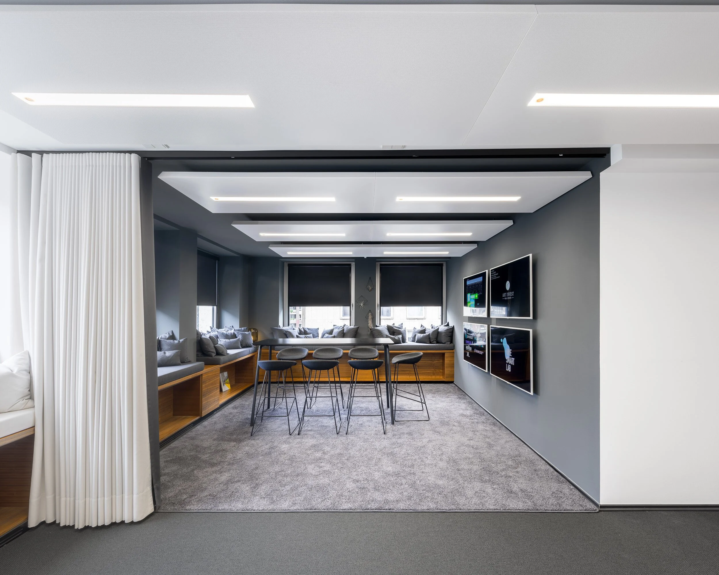 Ein nachhaltiges Gebäude hat für Art-Invest Real Estate allerdings noch eine weitere Komponente: Man möchte Bürogebäude schaffen, in dem sich Menschen gerne aufhalten und somit produktiv arbeiten können. Dies geschieht u.a. durch eine App, mit der man Türen öffnet, die freie Räume oder Arbeitsplätze anzeigt oder Gebäudefunktionen wie Licht, Temperatur oder Aufzüge steuern kann. Dazu kommt eine Gebäudeautomation, deren Funktion und Effizienz in Echtzeit durch intelligente Algorithmen ausgewertet und mit weiteren Daten wie der Belegung oder z. B. mit Wetterdaten kombiniert und angepasst wird.