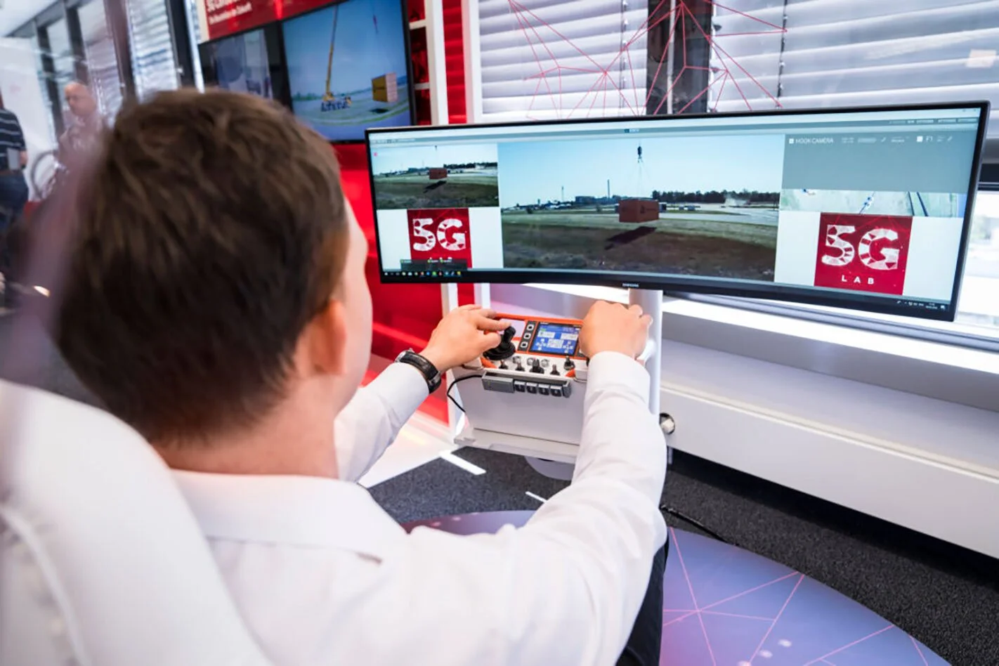 Im neuen Vodafone 5G Lab kann ein Kran via Mobilfunk in 60 Kilometer Entfernung gesteuert werden.