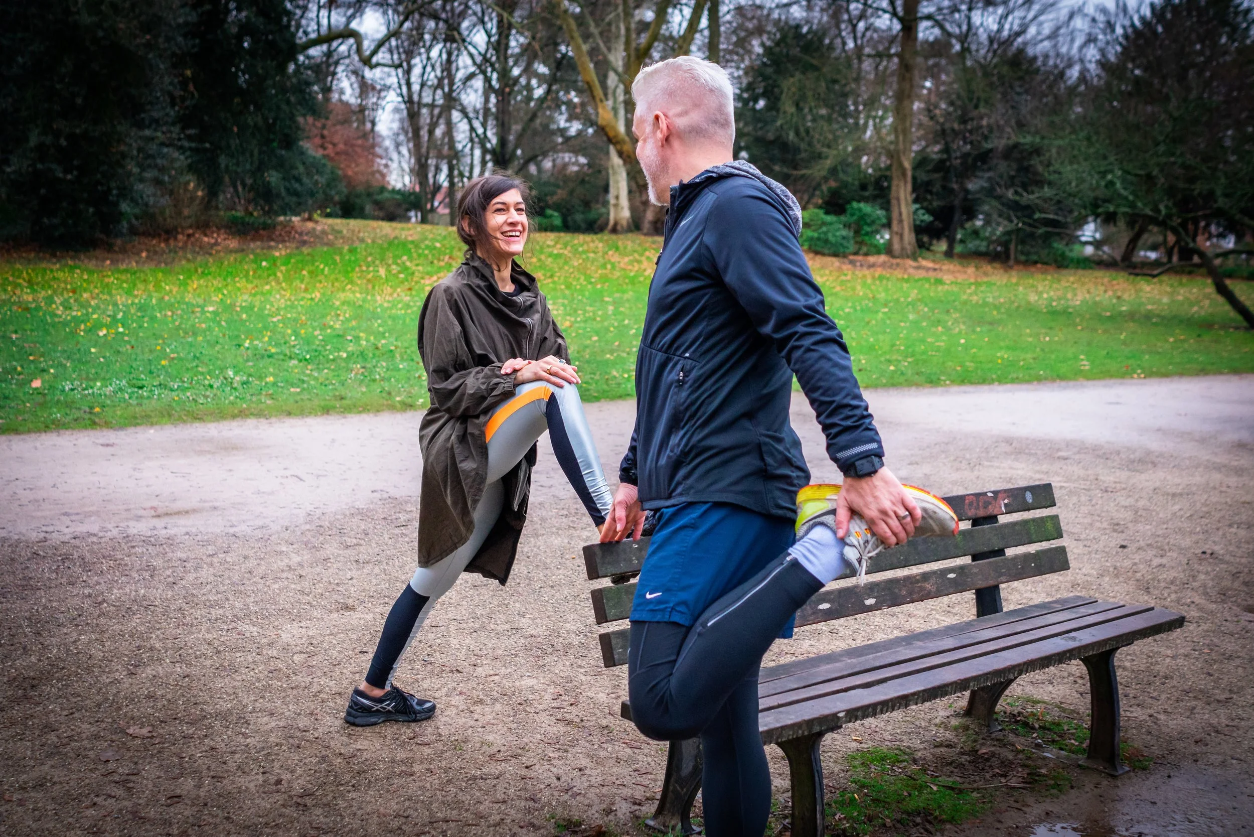 Die in Düsseldorf-Oberbilk lebende Modedesignerin Marion Strehlow joggt leidenschaftlich gerne, genauso wie VIVID-Herausgeber Rainer Kunst. Im Volksgarten haben sich die beiden zu einer gemeinsamen Laufrunde getroffen.