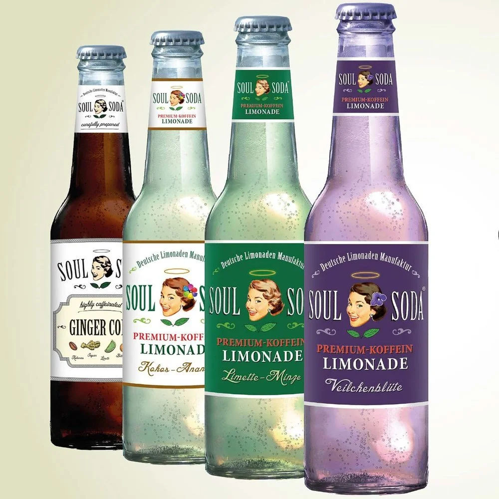 Soul Soda prickelt zwar, aber ist anders als übliche taurinhaltige Energydrinks, Cola-Varianten, Fassbrausen oder Bitter- und Lemongetränke. „Soul Soda besteht aus natürlichen Zutaten und zehn Prozent Fruchtgehalt“, sagt Albert Isakson. In seiner Limonaden-Manufaktur werden Ginger Cola und Apple-Almond-Sprizz, Veilchenblüten, Minze, Feige und Kokos mit Koffein als Muntermacher oder Erfrischer für zwischendurch oder als Zutat für Longdrinks und Cocktail-Kreationen in 0,25-Liter-Glasfläschchen mit Vintage-Look und Pin-up-Girl als Logo abgefüllt.